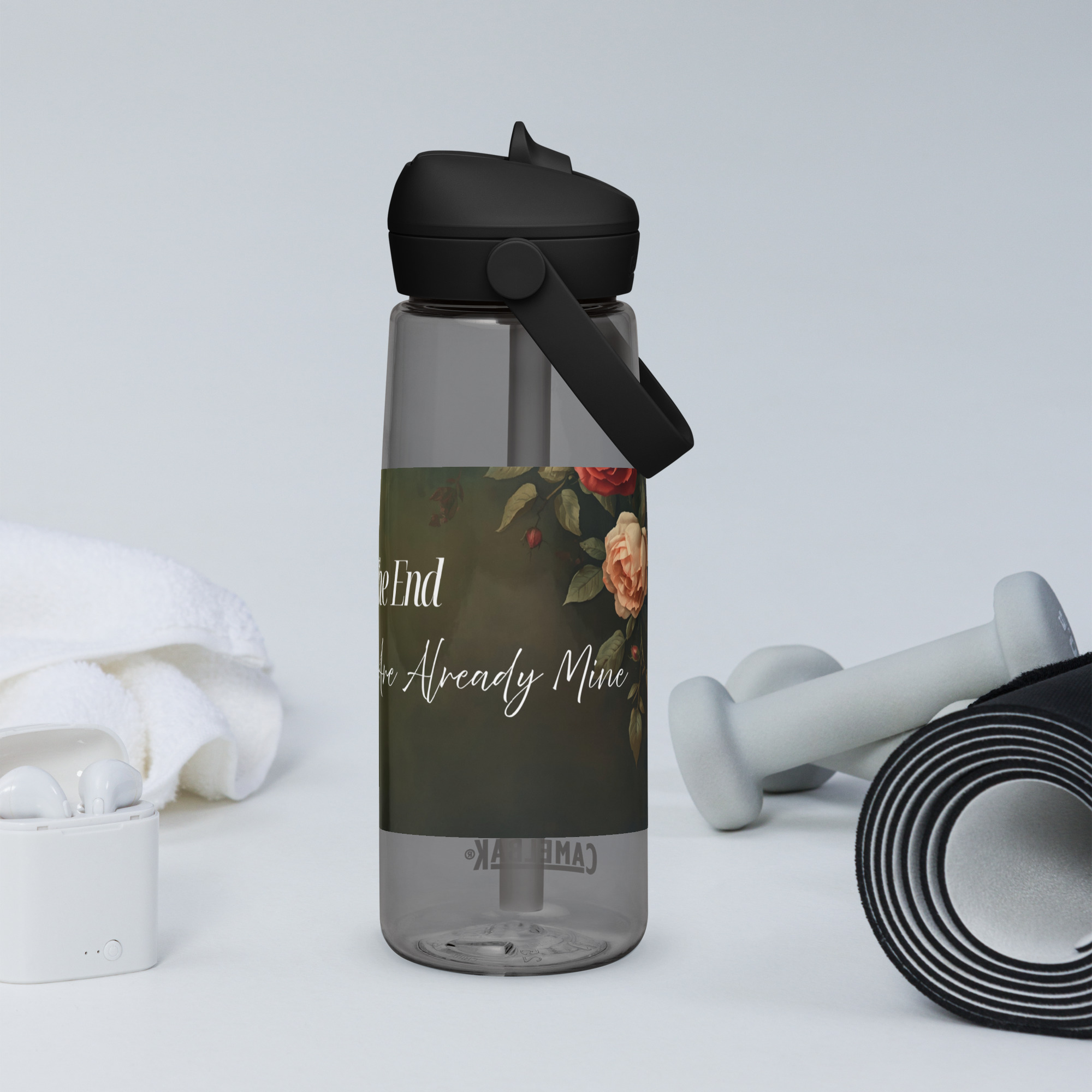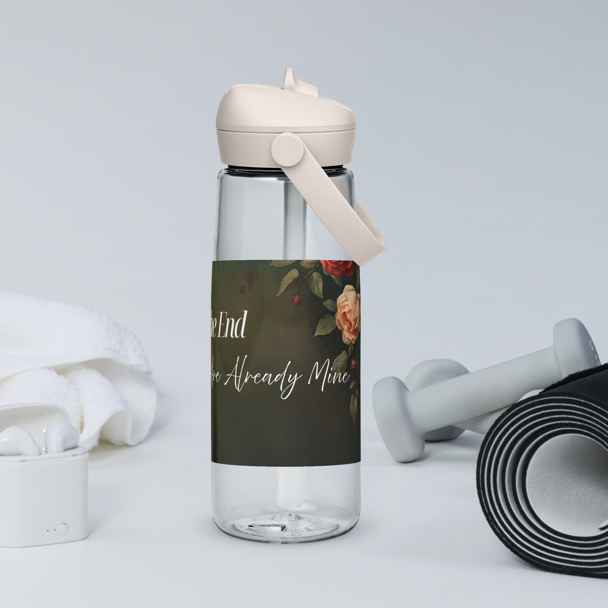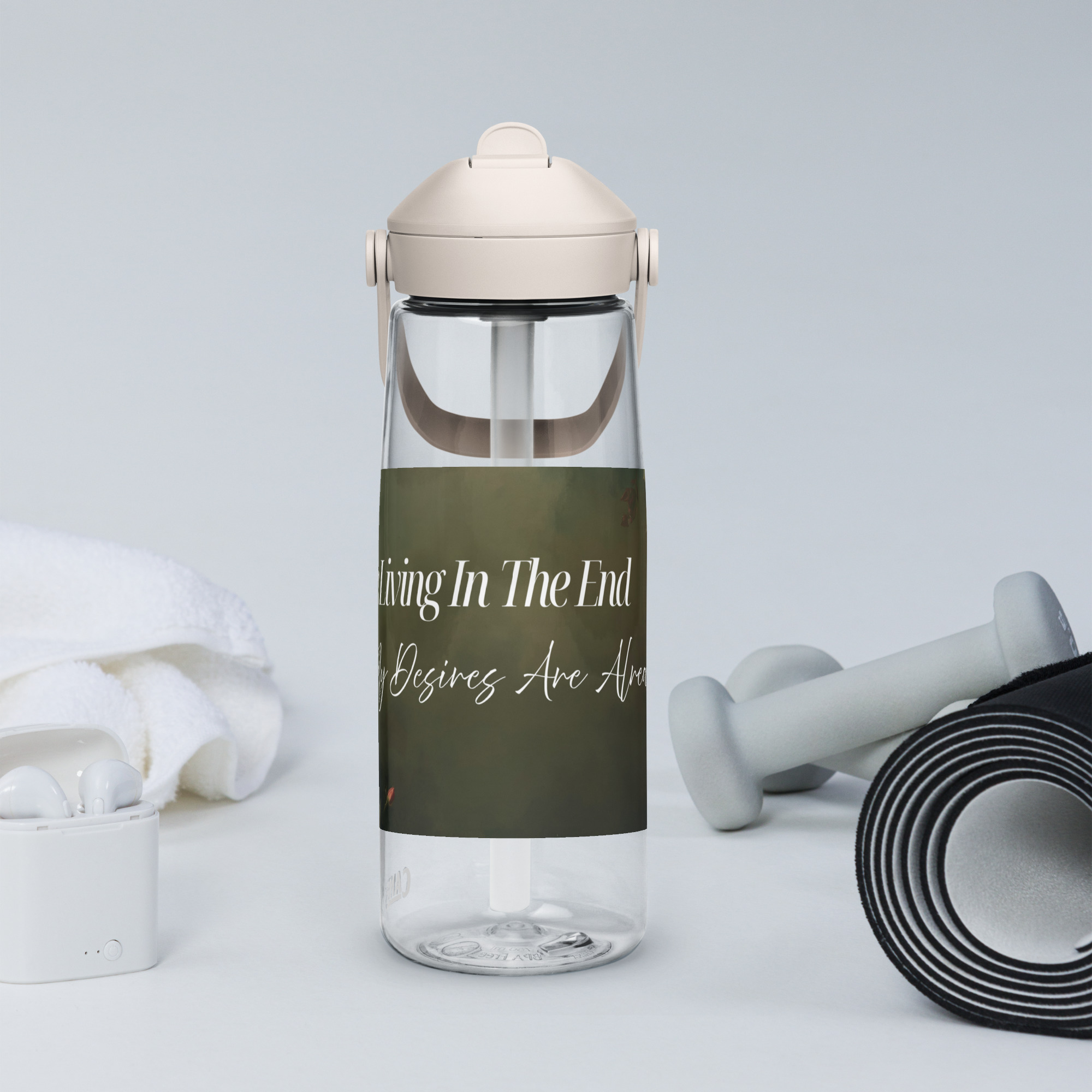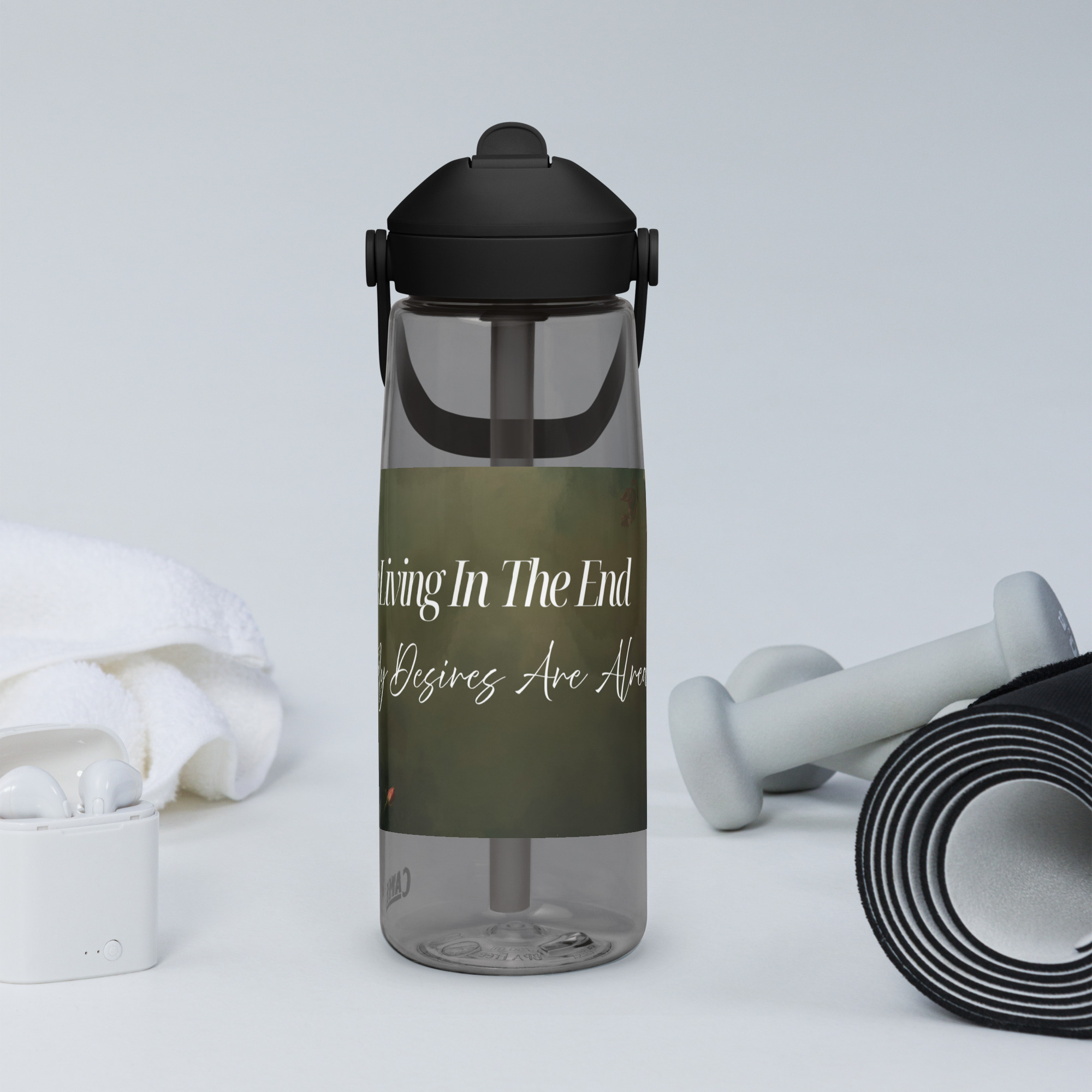 Stay hydrated in style with this flip straw water bottle, made from 50% recycled plastic. Resistant to stains, shattering, and odors, it keeps your drinks fresh, while the leak-proof cover and bite valve prevent spills. This extra-large bottle is ideal for extended gym, work, or study sessions!